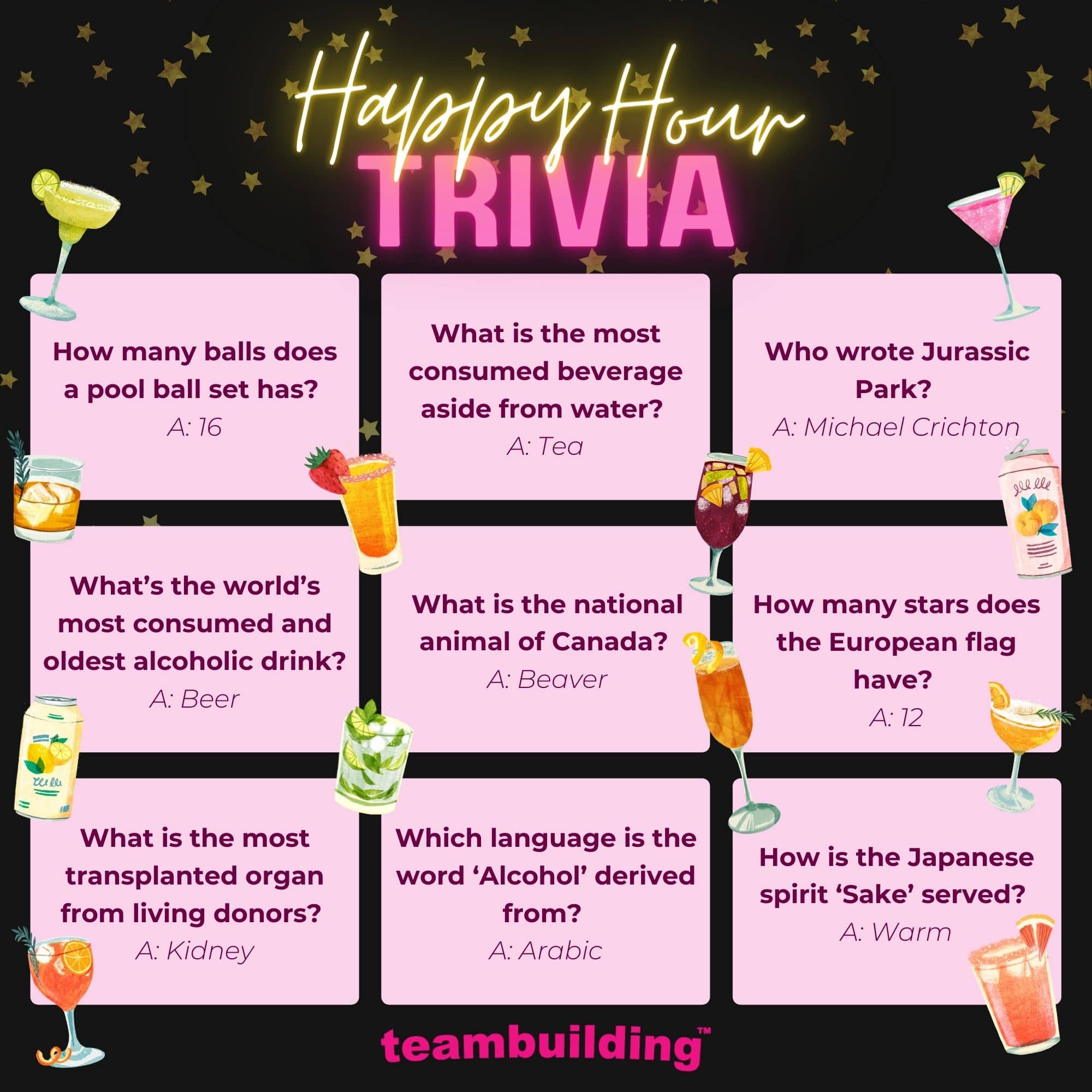 Here is our list of the best work happy hour ideas, games & activities for team building.