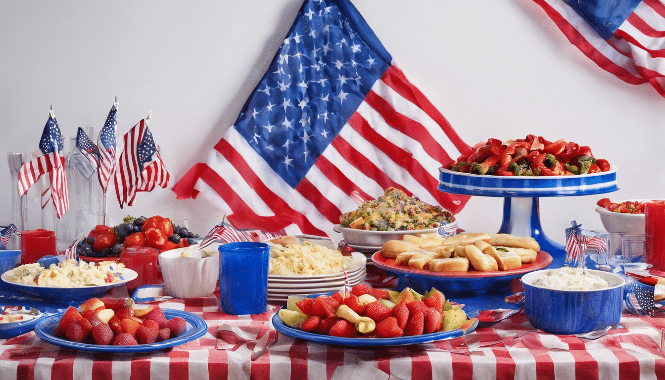 For a patriotic touch, folks can bring dishes that have red, white, or blue elements. Then, set up a table where chefs can place their meals. Folks can grab a plate, get some food, and enjoy! You can also decorate the potluck area with flags and other red, white, and blue decor. Sharing homemade dishes allows coworkers to express their creativity.