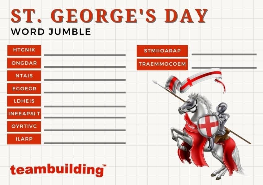 St. George’s Day-themed word jumbles are a great way to teach students about St. George. To make the game, find words related to St. George’s Day, scramble the letters, and ask students to figure out the words. You can group the students into small teams and have the team leader note down how many jumbles each student gets right.
