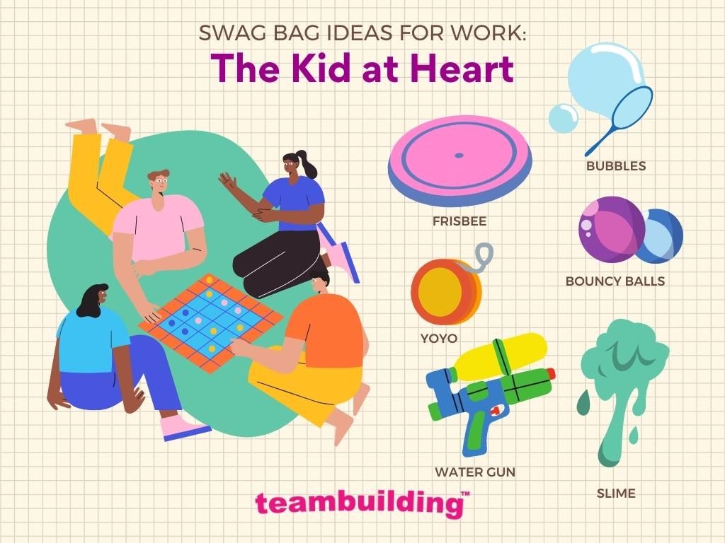 Items to include: Bubbles, yo-yos, frisbees, slime, water guns, bouncy balls