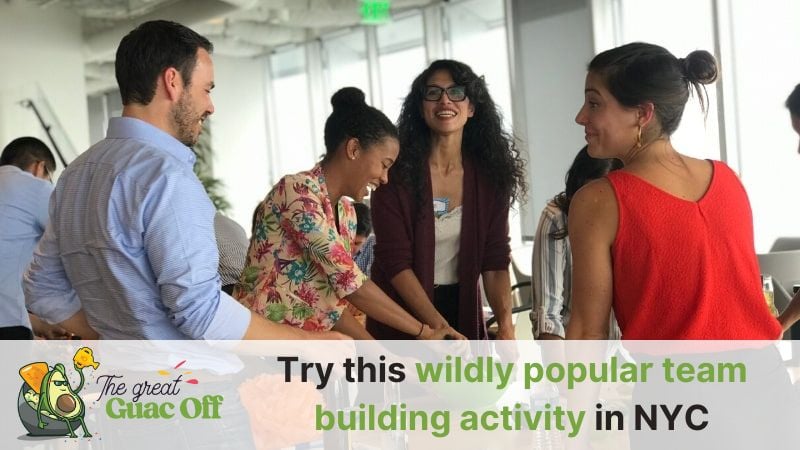 The Great Guac Off is one of the most popular team building activities in NYC, and is loved by teams at Amazon, HelloFresh, YouTube and more. The event is 90 minutes of fun icebreakers and mini-games, together with a wildly fun and competitive guacamole making competition.