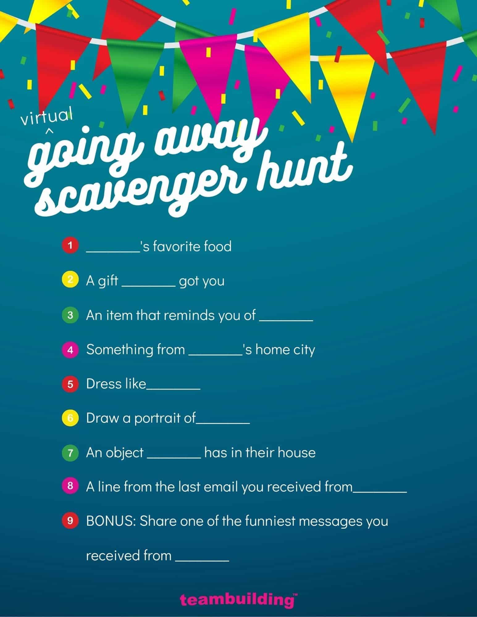 For remote goodbye parties, you could base the clues around the guest of honor. Here is an example: