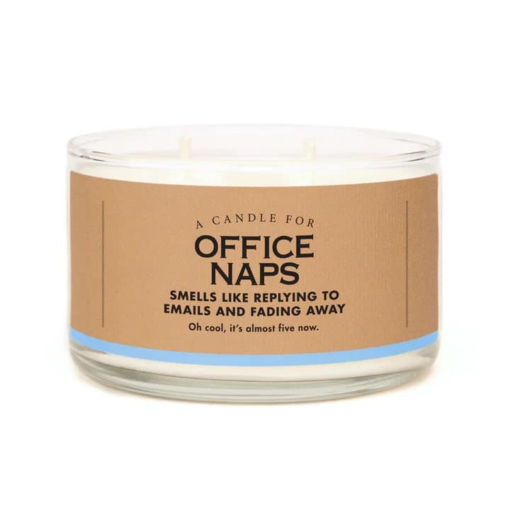 Candles are safe gifts: unisex and are great options for folks you do not yet know particularly well. A safe gift choice does not need to be a boring gift choice, though. There are many unique, sassy candle scents on the market. Our favorite is the Whisky River Soap Co.’s A Candle for Office Naps. A Candle for Office Naps supposedly smells like “replying to emails and fading away” but smells like Mountain Hazelnut Cafe in reality.